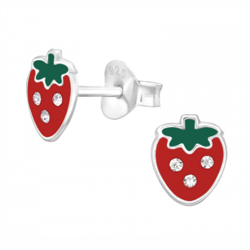 Zilveren Kinder Oorknopjes – Aardbei Liefde
