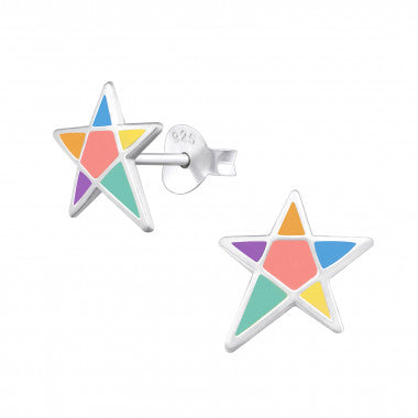 Stralende Sterren – Zilveren Kinderoorbellen in Kleurrijke Pracht