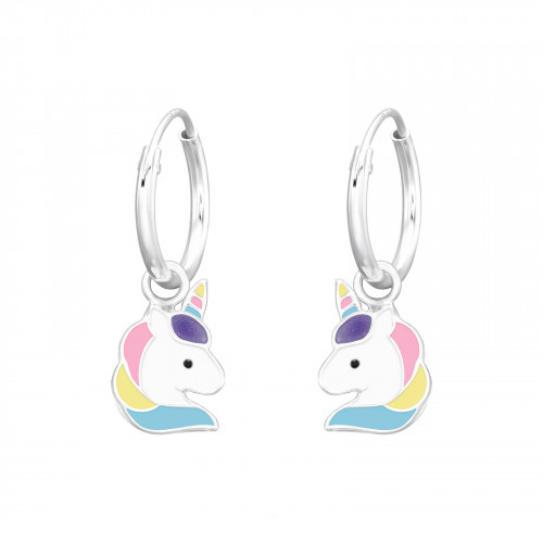 Een vleugje magie voor elke dag! Deze betoverende zilveren kinderoorbellen zijn oorringen met een schattige unicorn-hanger – perfect voor kleine dromers die houden van kleur én glans.